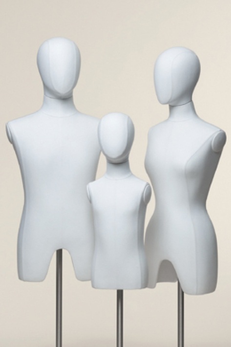 Детские портновские торсы в этом разделе изготовлены из стеклопластика и обтянуты тканью, а также натуральной или искусственной кожей.